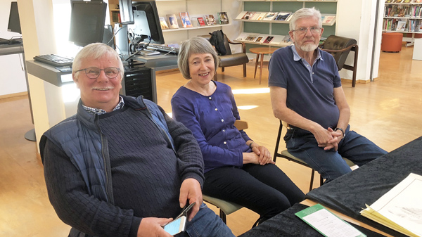 Torgdag 2018 Stand på Arendal Bibliotek. Fra ventre; Asbjørn Ribe, Ellen Ledaal Gjertsen, Bjørn Drivdal Fotograf: Eirik Mykland - Sted: Arendal Bibliotek - Når: 20. april 2018